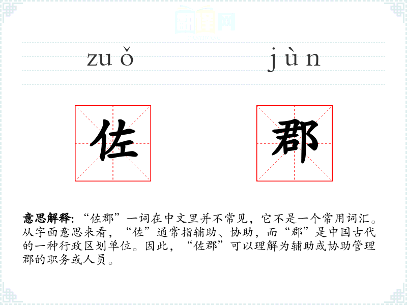 由于“佐郡”不是一个常用词汇,它在现代文学、口语或专业领域中很少出现。在古代文献中,可能会提到某人担任佐郡的职务,指的是辅助郡守管理地方事务的官员。
