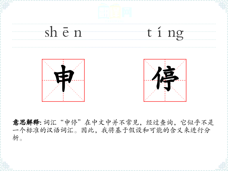 词汇“申停”在中文中并不常见,经过查询,它似乎不是一个标准的汉语词汇。因此,我将基于假设和可能的含义来进行分析。