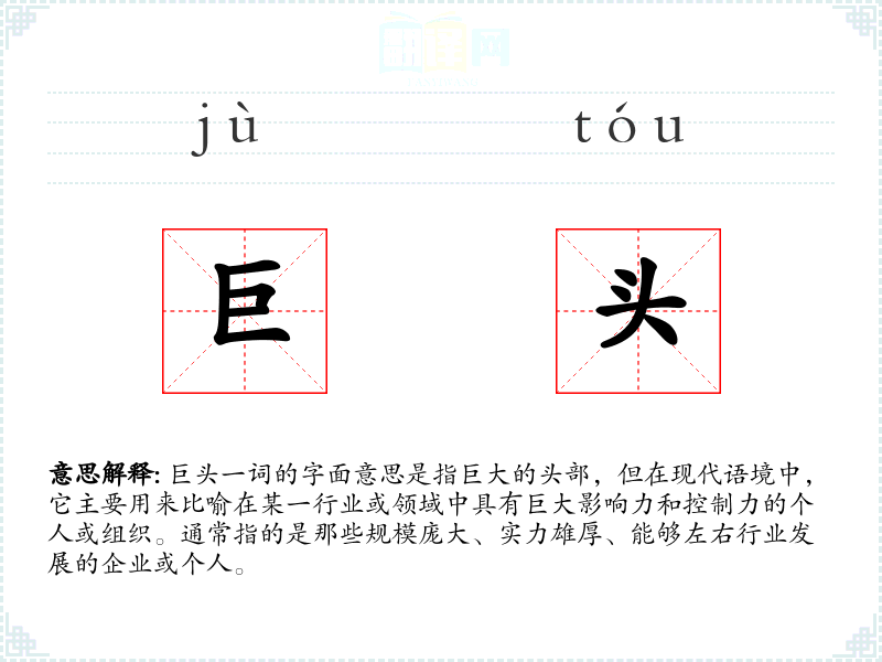 巨头一词的字面意思是指巨大的头部,但在现代语境中,它主要用来比喻在某一行业或领域中具有巨大影响力和控制力的个人或组织。通常指的是那些规模庞大、实力雄厚、能够左右行业发展的企业或个人。