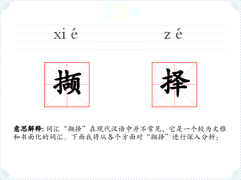 词汇“撷择”在现代汉语中并不常见,它是一个较为文雅和书面化的词汇。下面我将从各个方面对“撷择”进行深入分析: