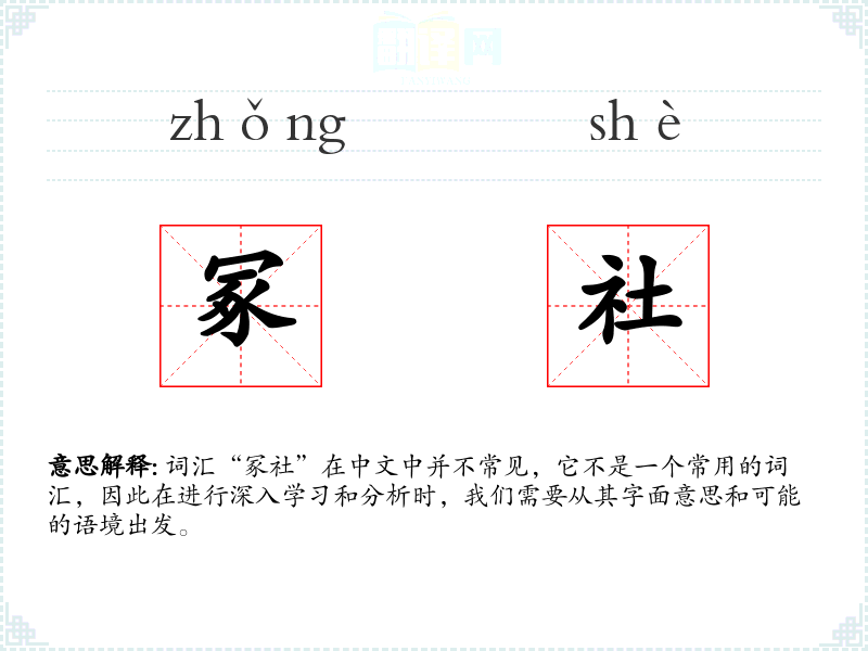 “冢社”是一个具有历史文化背景的词汇,虽然在现代汉语中不常用,但它反映了古代*的祭祀文化和坟墓文化。对于语言学者来说,了解这样的词汇可以帮助更好地理解**的历史文化。