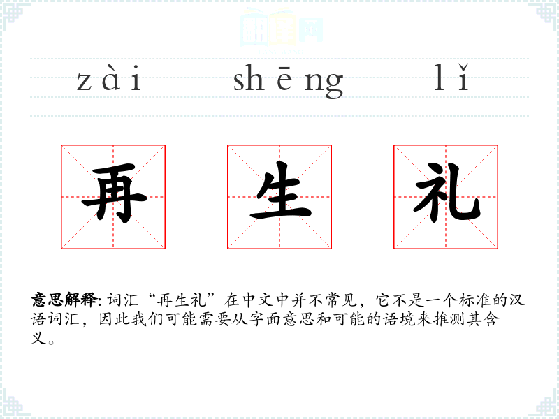 词汇“再生礼”在中文中并不常见,它不是一个标准的汉语词汇,因此我们可能需要从字面意思和可能的语境来推测其含义。