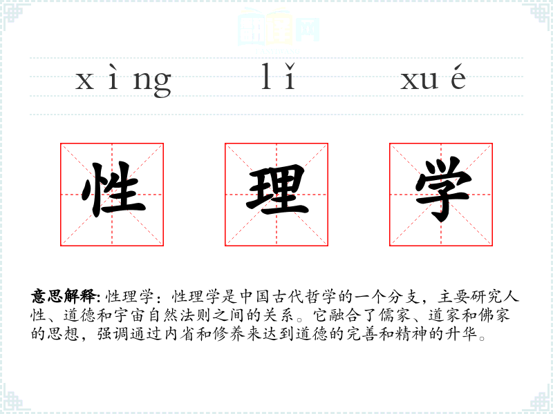 - 反义词:无(性理学作为一个特定领域的术语,没有直接的反义词)