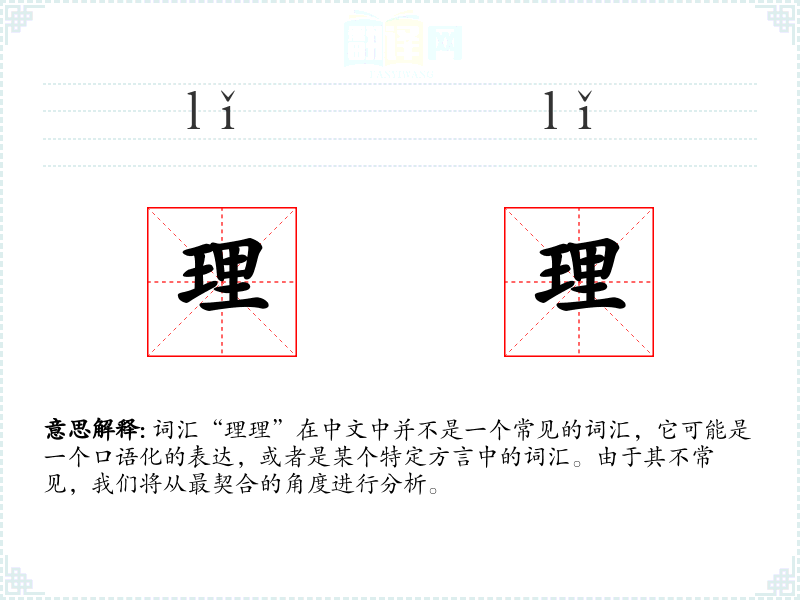 词汇“理理”在中文中并不是一个常见的词汇,它可能是一个口语化的表达,或者是某个特定方言中的词汇。由于其不常见,我们将从最契合的角度进行分析。