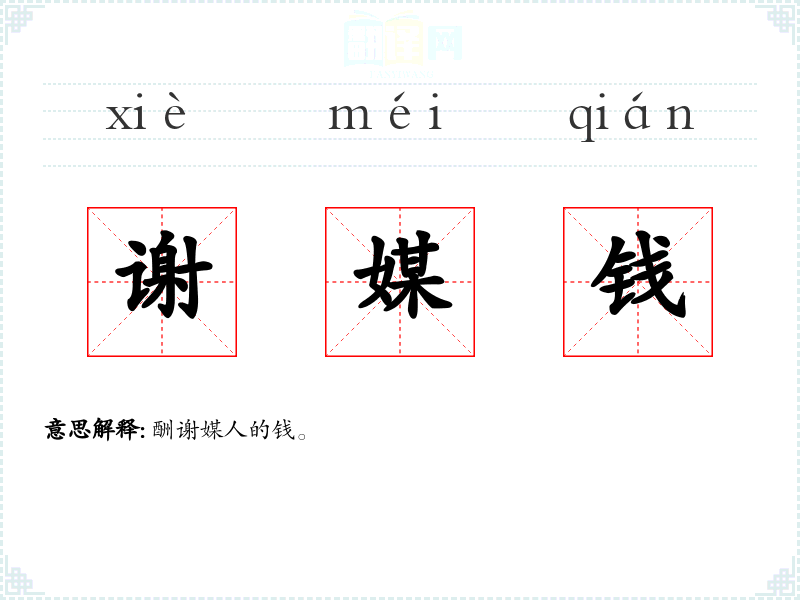 谢媒钱的分字解释
