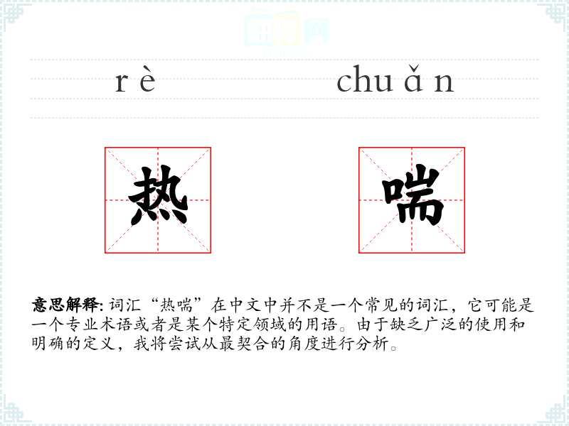 词汇“热喘”在中文中并不是一个常见的词汇,它可能是一个专业术语或者是某个特定领域的用语。由于缺乏广泛的使用和明确的定义,我将尝试从最契合的角度进行分析。