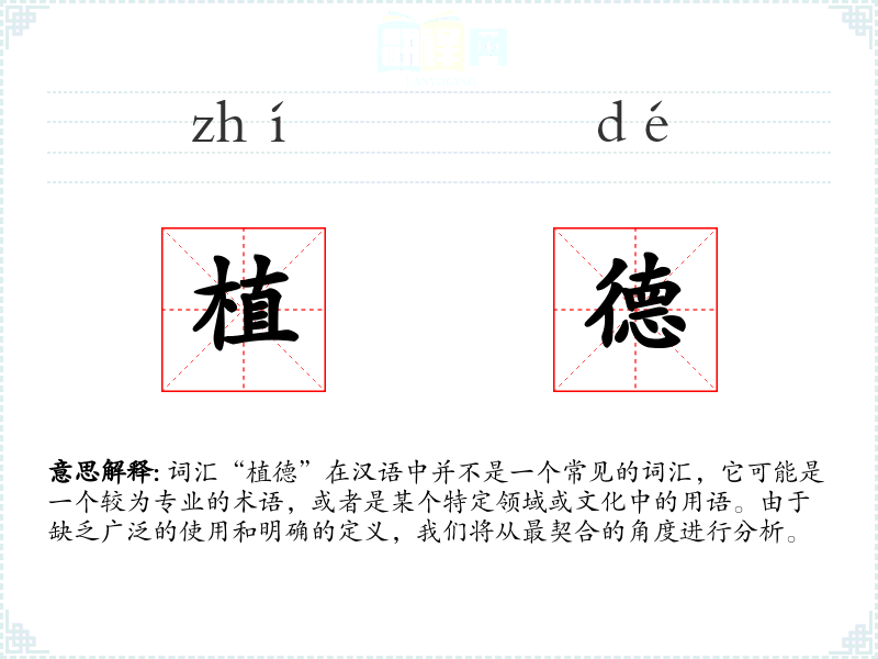 词汇“植德”在汉语中并不是一个常见的词汇,它可能是一个较为专业的术语,或者是某个特定领域或文化中的用语。由于缺乏广泛的使用和明确的定义,我们将从最契合的角度进行分析。