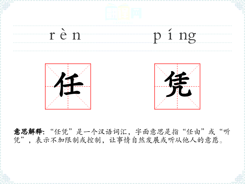 “任凭”是一个汉语词汇,字面意思是指“任由”或“听凭”,表示不加限制或控制,让事情自然发展或听从他人的意愿。
