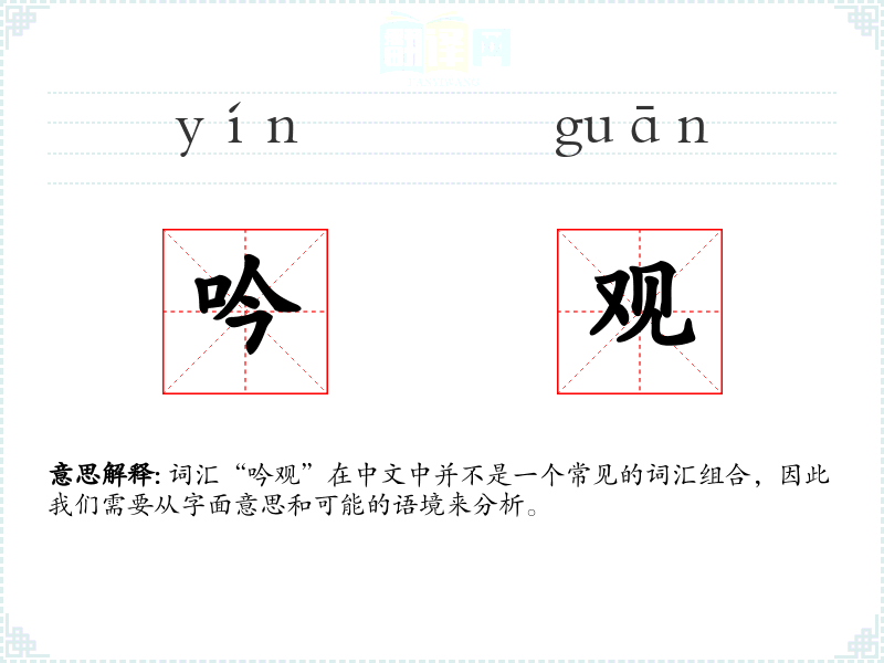 词汇“吟观”在中文中并不是一个常见的词汇组合,因此我们需要从字面意思和可能的语境来分析。