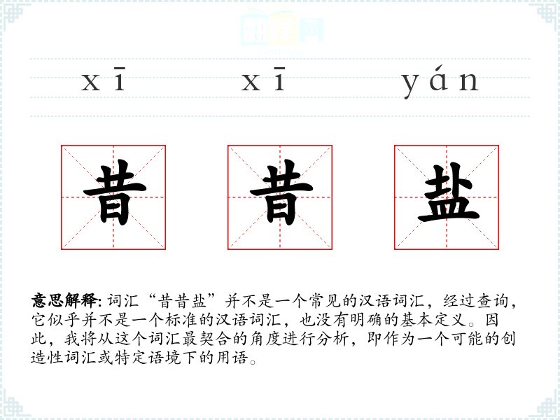 由于“昔昔盐”不是一个标准词汇,我们无法给出其字面意思和基本含义。它可能是某个特定领域、方言或个人创造的词汇。