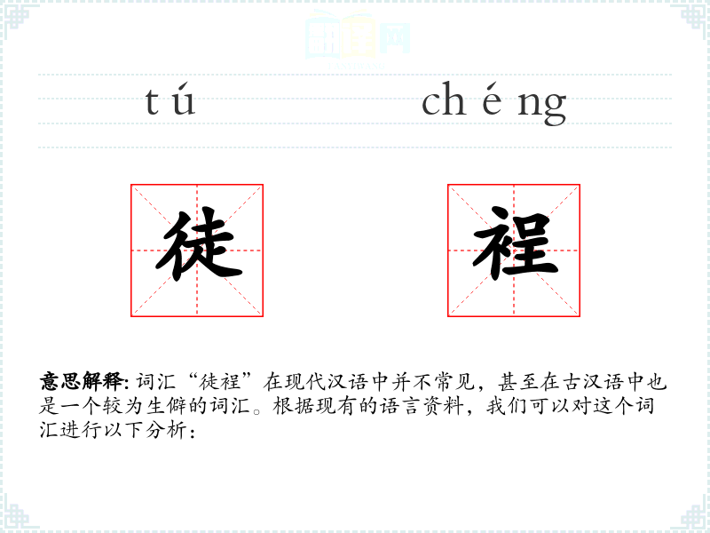 词汇“徒裎”在现代汉语中并不常见,甚至在古汉语中也是一个较为生僻的词汇。根据现有的语言资料,我们可以对这个词汇进行以下分析: