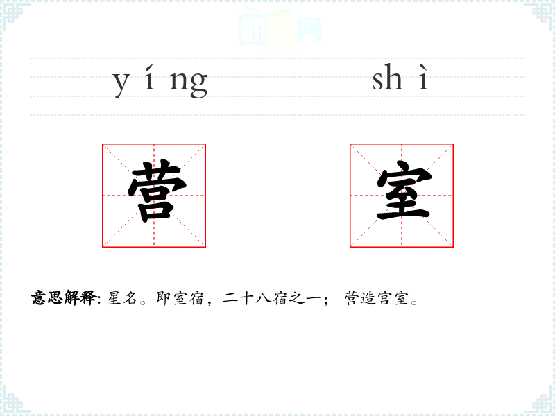 星名。即室宿,二十八宿之一; 营造宫室。