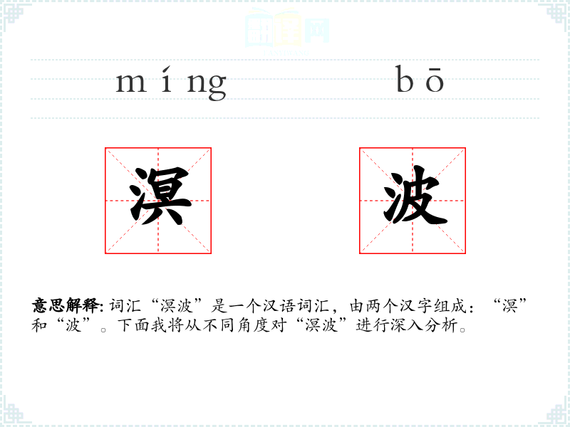词汇“溟波”是一个汉语词汇,由两个汉字组成:“溟”和“波”。下面我将从不同角度对“溟波”进行深入分析。