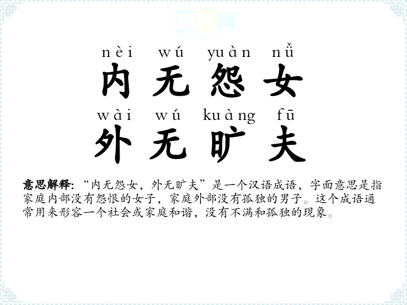 - nèi wú yuàn nǚ,wài wú kuàng fū内无怨女,外无旷夫