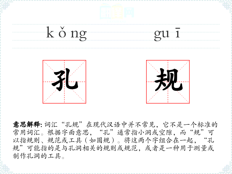由于“孔规”不是一个常用词汇,其词源和演变不详。可能是由专业术语逐渐形成,用于特定行业或技术领域。