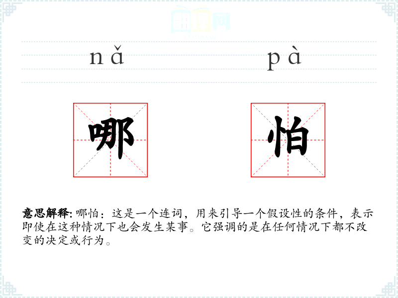 "哪怕"的意思解释、哪怕是什么意思由翻译网汉语词典查词提供。