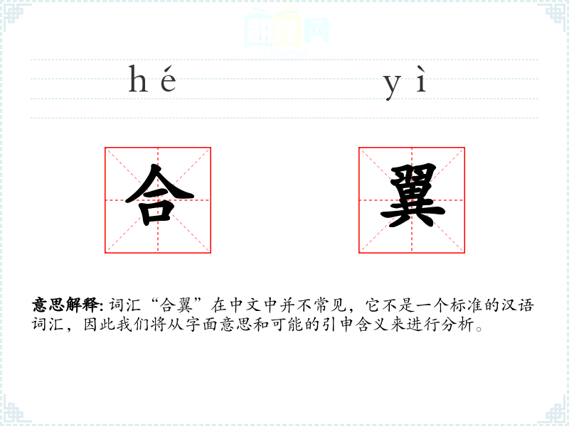 词汇“合翼”在中文中并不常见,它不是一个标准的汉语词汇,因此我们将从字面意思和可能的引申含义来进行分析。