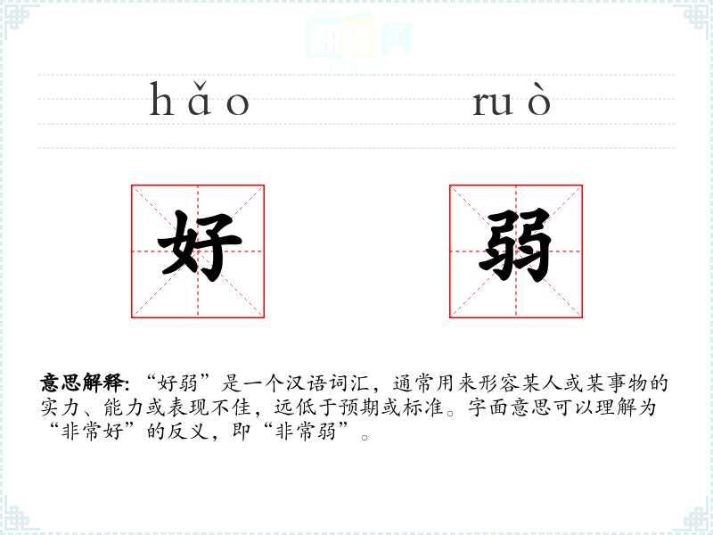 "好弱"的意思解释、好弱是什么意思由翻译网汉语词典查词提供。