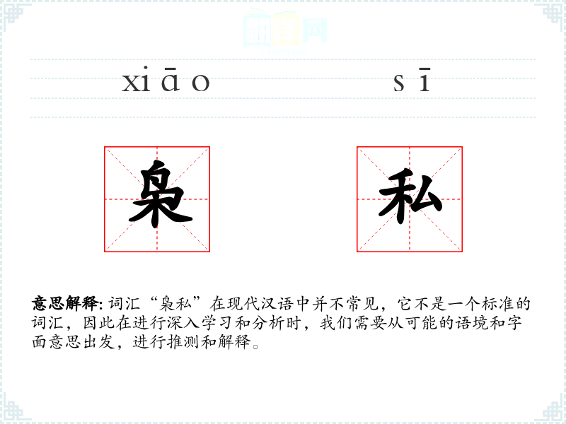 “枭私”这个词汇可能是由两个字组合而成:“枭”和“私”。