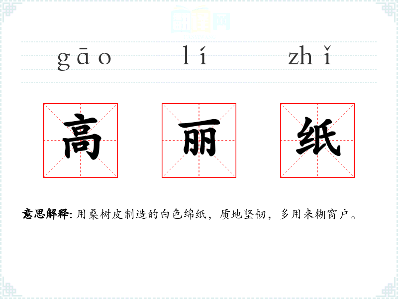 高丽纸的分字解释