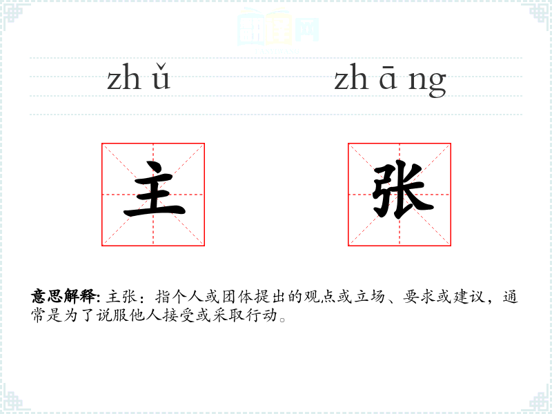 "主张"的意思解释、主张是什么意思由翻译网汉语词典查词提供。