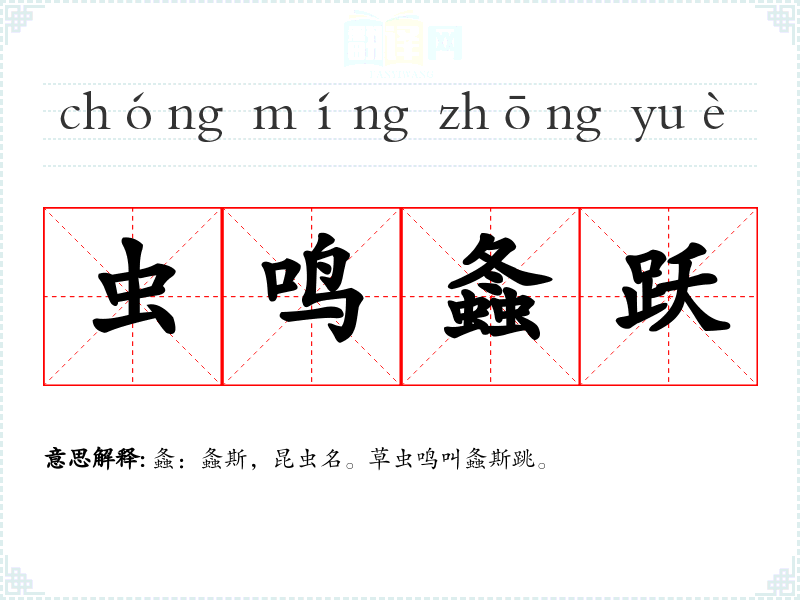 螽:螽斯,昆虫名。草虫鸣叫螽斯跳。