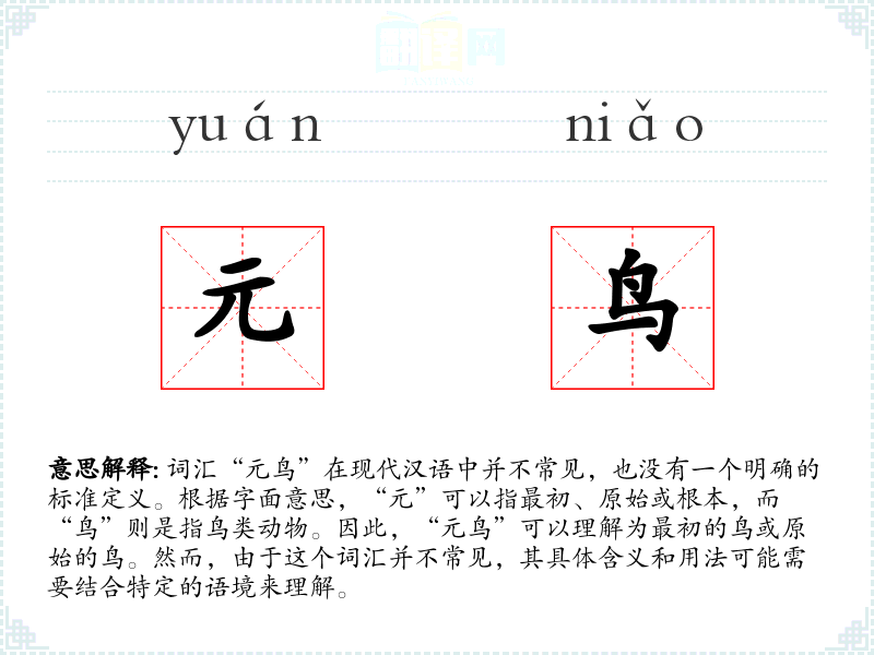由于“元鸟”不是一个常用词汇,其词源和演变历史不详。可能是在特定的文化或学术背景下创造的词汇。