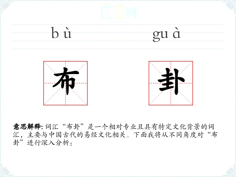 词汇“布卦”是一个相对专业且具有特定文化背景的词汇,主要与**古代的易经文化相关。下面我将从不同角度对“布卦”进行深入分析: