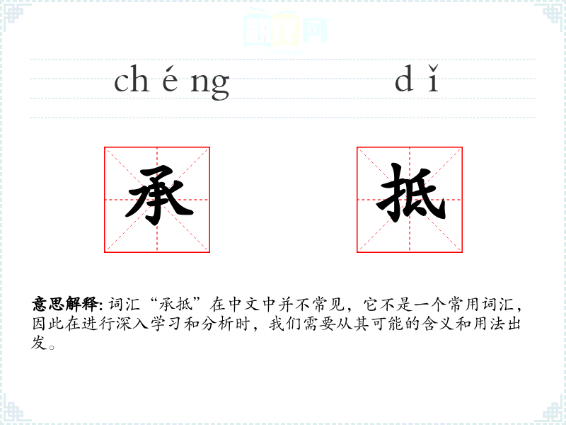 词汇“承抵”在中文中并不常见,它不是一个常用词汇,因此在进行深入学习和分析时,我们需要从其可能的含义和用法出发。