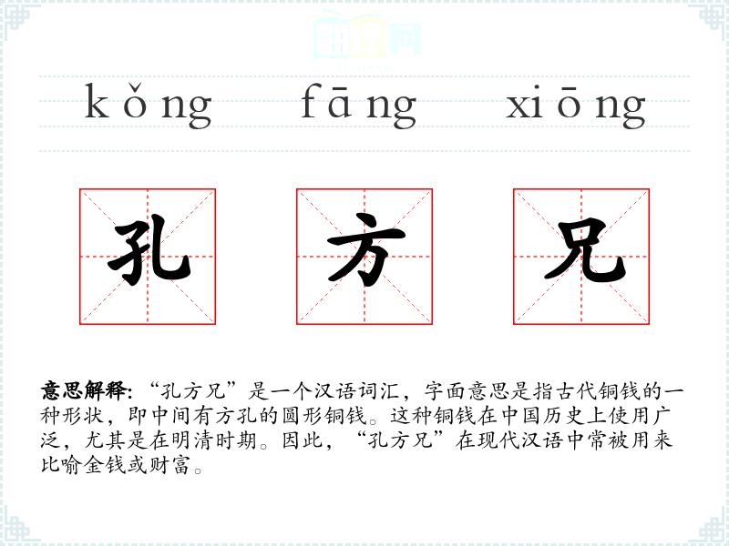 “孔方兄”一词源于古代铜钱的形状,随着时间的推移,其含义逐渐扩展到比喻金钱和财富。在现代汉语中,这个词的使用频率可能不如古代,但在特定的语境下仍被广泛使用。
