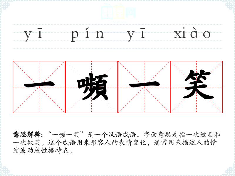 “一嚬一笑”是一个汉语成语,字面意思是指一次皱眉和一次微笑。这个成语用来形容人的表情变化,通常用来描述人的情绪波动或性格特点。
