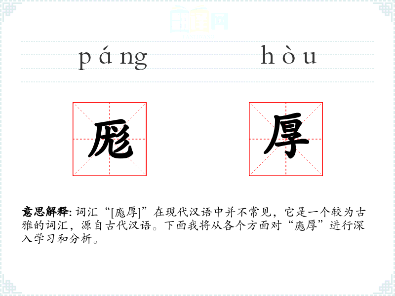 词汇“[庬厚]”在现代汉语中并不常见,它是一个较为古雅的词汇,源自古代汉语。下面我将从各个方面对“庬厚”进行深入学*和分析。