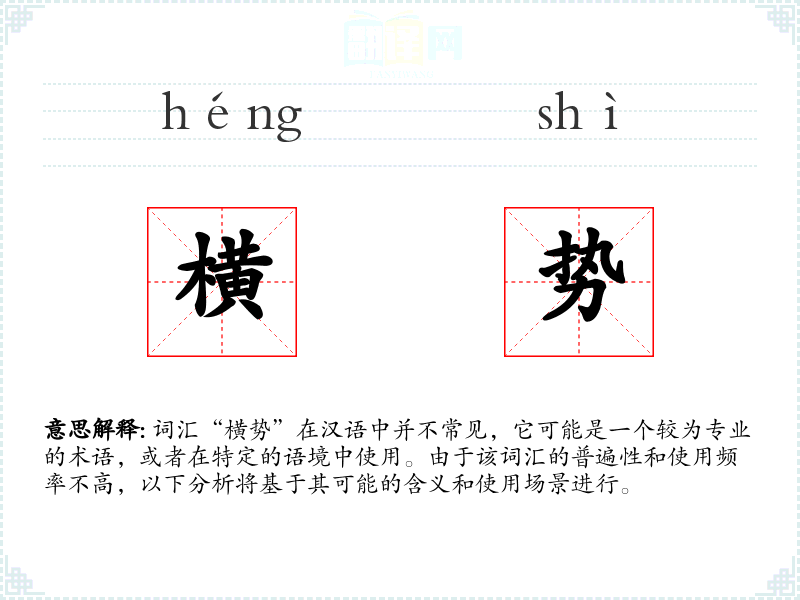 词汇“横势”在汉语中并不常见,它可能是一个较为专业的术语,或者在特定的语境中使用。由于该词汇的普遍性和使用频率不高,以下分析将基于其可能的含义和使用场景进行。