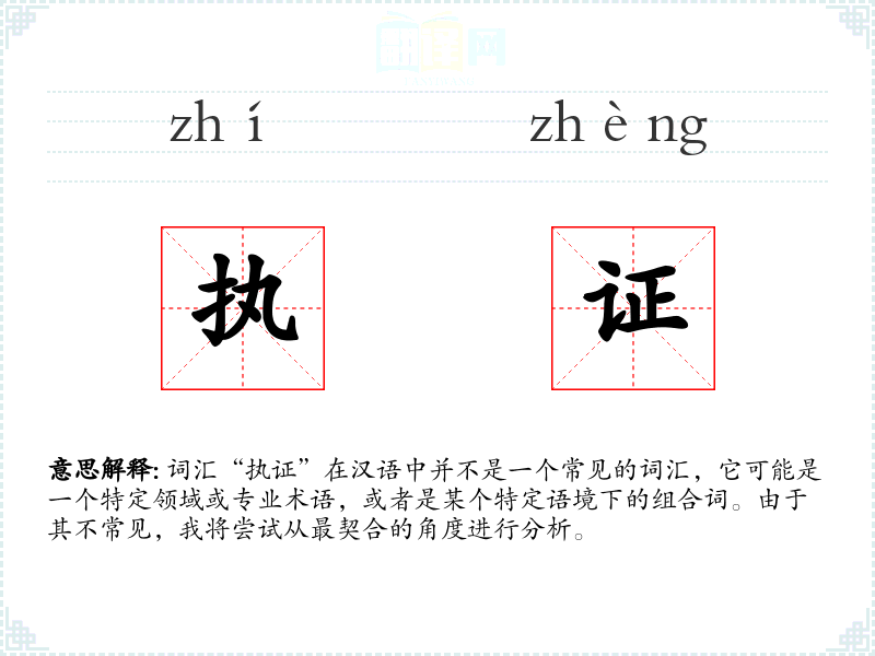 词汇“执证”在汉语中并不是一个常见的词汇,它可能是一个特定领域或专业术语,或者是某个特定语境下的组合词。由于其不常见,我将尝试从最契合的角度进行分析。