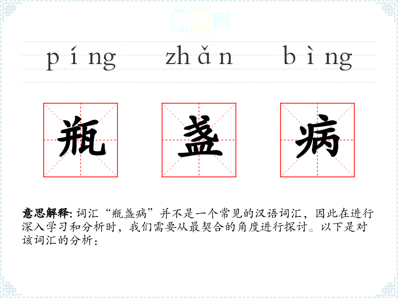 词汇“瓶盏病”并不是一个常见的汉语词汇,因此在进行深入学习和分析时,我们需要从最契合的角度进行探讨。以下是对该词汇的分析: