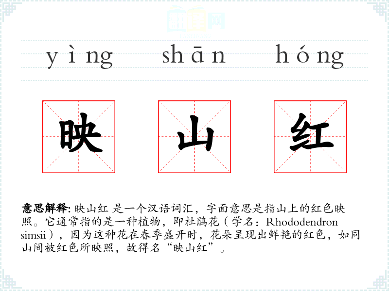 同义词:杜鹃花、山丹、红花、红艳 反义词:暗淡、苍白、无色