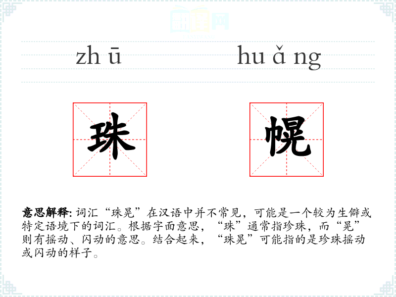 - 词源:“珠”源自古代对珍珠的称呼,“晃”则源自摇动、闪动的动作。
