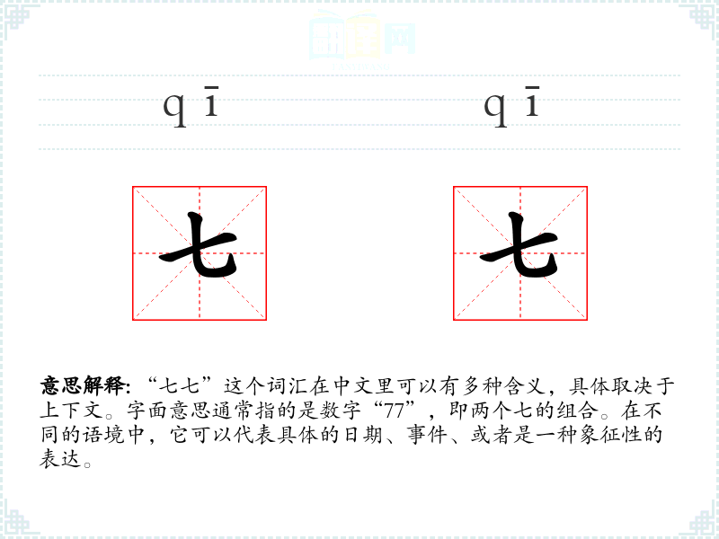 "七七"的意思解释、七七是什么意思由翻译网汉语词典查词提供。