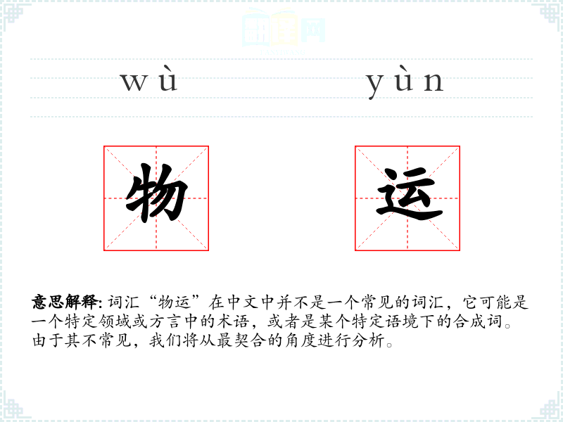词汇“物运”在中文中并不是一个常见的词汇,它可能是一个特定领域或方言中的术语,或者是某个特定语境下的合成词。由于其不常见,我们将从最契合的角度进行分析。