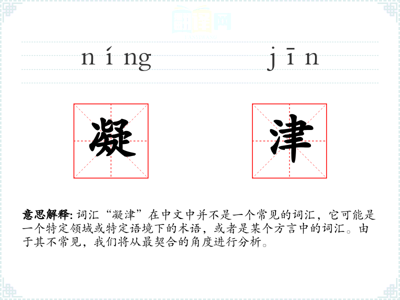 词汇“凝津”在中文中并不是一个常见的词汇,它可能是一个特定领域或特定语境下的术语,或者是某个方言中的词汇。由于其不常见,我们将从最契合的角度进行分析。