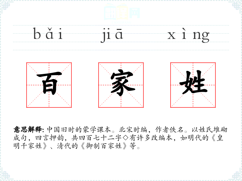 繁体百家姓