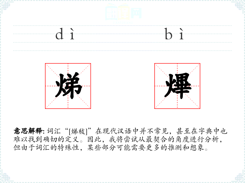 词汇“[焍秡]”在现代汉语中并不常见,甚至在字典中也难以找到确切的定义。因此,我将尝试从最契合的角度进行分析,但由于词汇的特殊性,某些部分可能需要更多的推测和想象。