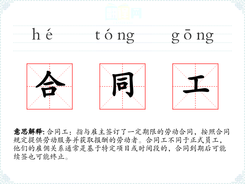"合同工"的意思解释、合同工是什么意思由翻译网汉语词典查词提供。