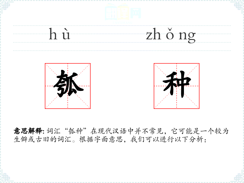 词汇“瓠种”在现代汉语中并不常见,它可能是一个较为生僻或古旧的词汇。根据字面意思,我们可以进行以下分析: