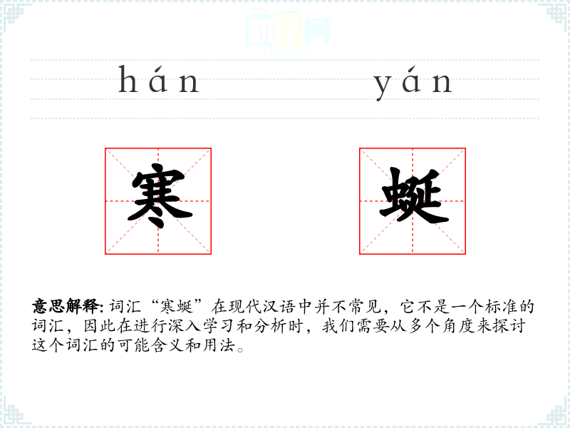 词汇“寒蜒”在现代汉语中并不常见,它不是一个标准的词汇,因此在进行深入学*和分析时,我们需要从多个角度来探讨这个词汇的可能含义和用法。