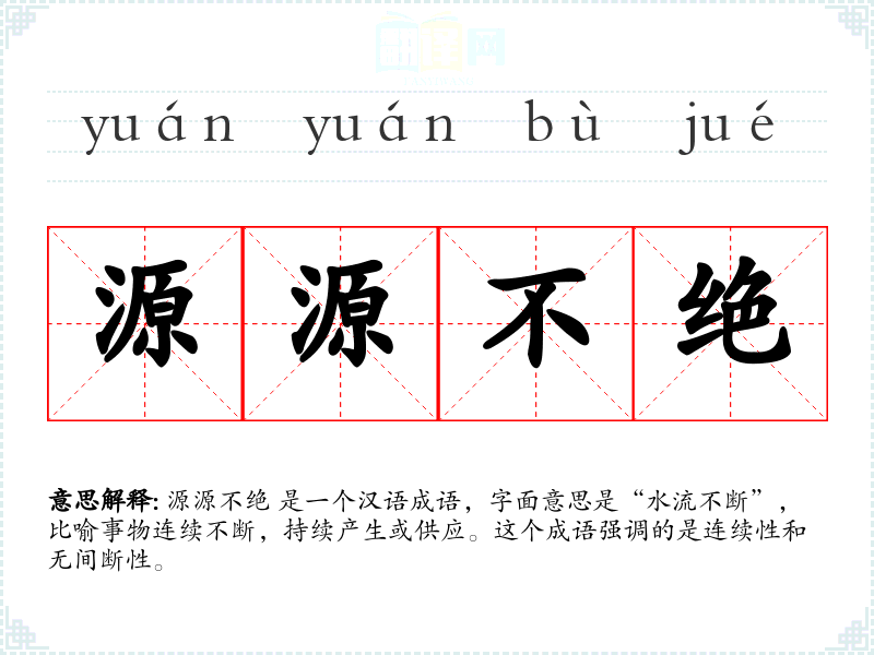 在英语中,类似的表达有“unceasing”或“continuous”,但“源源不绝”更强调连续性和无间断性。