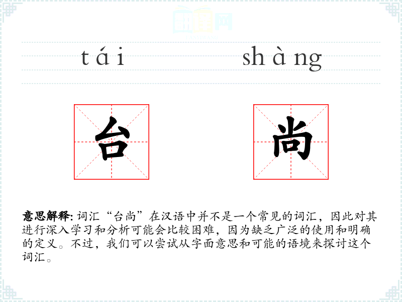 在特定的文化或社会背景中,“台尚”可能有一些特殊的含义,但这需要具体的语境和背景知识来解释。