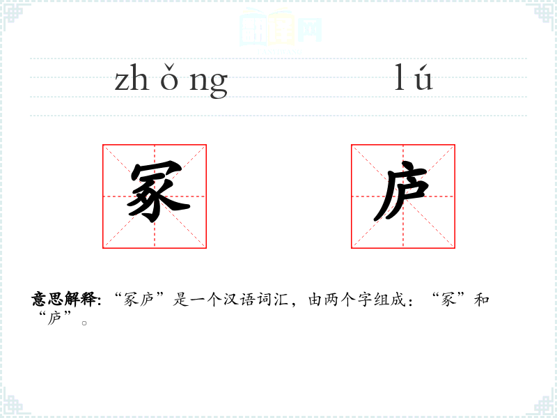 - 词源:“冢”和“庐”都是古代汉语词汇,历史悠久。