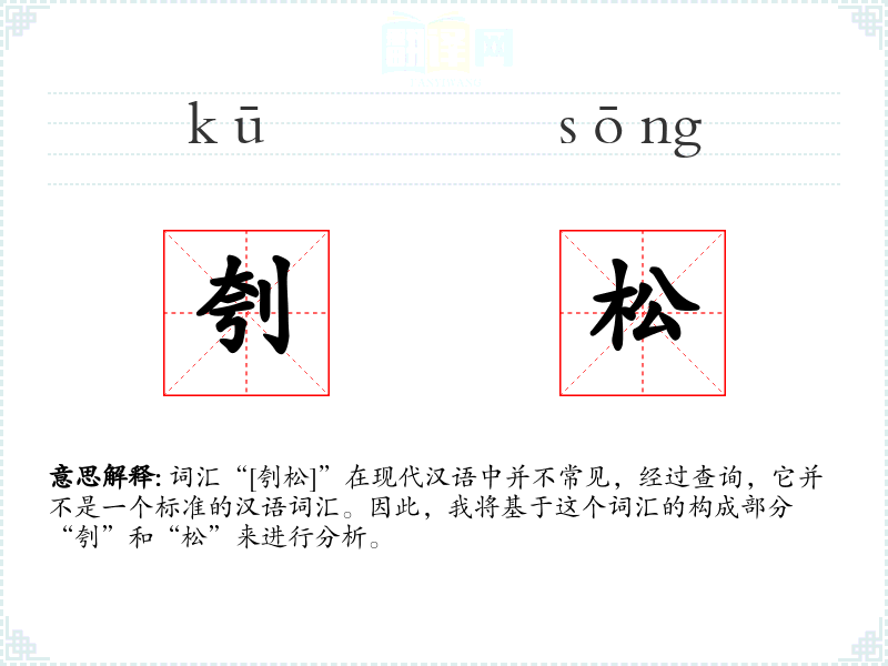 词汇“[刳松]”在现代汉语中并不常见,经过查询,它并不是一个标准的汉语词汇。因此,我将基于这个词汇的构成部分“刳”和“松”来进行分析。