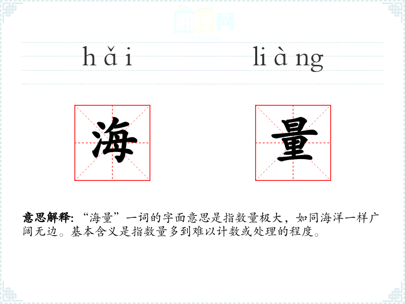 "海量"的意思解释、海量是什么意思由翻译网汉语词典查词提供。